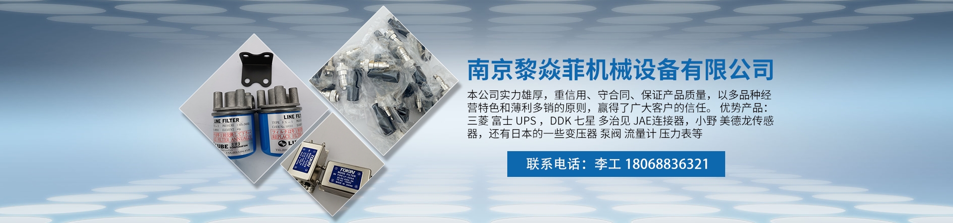 南京黎焱菲機械設備有限公司 經銷批發的儀器儀表、電子元器件、機械設備、電工電氣、電子元器件 暢銷消費者市場,在消費者當中享有較高的地位,公司與多家零售商和代理商建立了長期穩定的合作關 系。南京黎焱菲機械設備有限公司經銷的儀器儀表、電子元器件、機械設備、電工電氣、電子元器件品 種齊全、價格合理。南京黎焱菲機械設備有限公司實力雄厚,重信用、守合同、保證產品質量,以多品 種經營特色和薄利多銷的原則,贏得了廣大客戶的信任。 優勢產品: 三菱 富士 UPS ,DDK 七星 多治見 JAE連接器,小野 美德龍傳感器,還有日本的一些變壓器 泵閥 流量計 壓力表 等